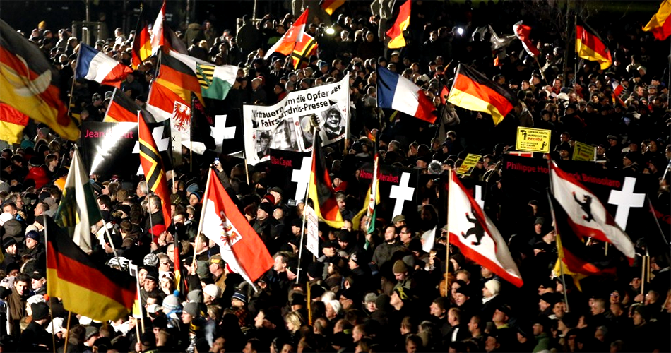 O AfD (Alternativa Para a Alemanha) entrou pela primeira vez no Parlamento após as eleições gerais de 2017, quando recebeu 12,6% dos votos. Desde então, sofre uma certa estagnação no âmbito nacional – obteve 11% nas eleições europeias –, mas no Leste da Alemanha, região mais afetada pela crise, tem seu pilar e continua possuindo forte apoio. Em suas manifestações, o partido costuma assegurar que todos os seus militantes portem a bandeira alemã e acusa os demais partidos de sentirem vergonha dos símbolos nacionais. O movimento alemão xenófobo e nacionalista chamado Pegida, aliado do AfD, adota o slogan "patriotismo não é crime", alegando que as elites e políticos como Angela Merkel envergonham-se de qualquer símbolo nacional.